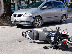 Una motocicleta y mediana cilindrada y un automóvil colisionaron en avenida 3 entre paseos 108 y 109, en diagonal al municipio.