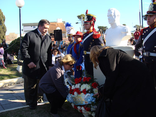 El acto reunió cerca de 250 personas que se aglomeraron en la plaza pública para rendirle homenaje al libertador y padre de la patria. Participaron dos granaderos que escoltaron el busto de San Martín durante toda la ceremonia. Erneta instó a seguir con el legado de la integración y la solidaridad a la vez que manifestó que debemos “vencer la adversidad y los obstáculos con coraje”.