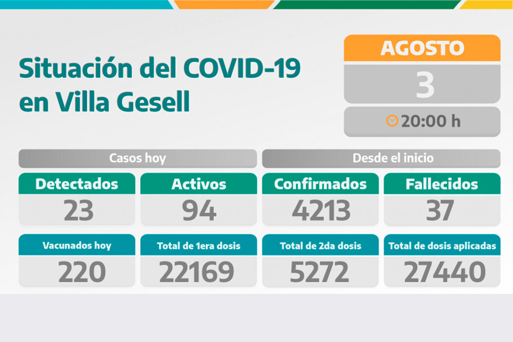 Según la comuna, hasta anoche se habían registrado 23 nuevos casos positivos en el sistema de salud público y no se detectaron casos en el sistema de salud privado. Asimismo, 13 pacientes recibieron el alta, lo que da un total de 94 casos activos en la ciudad. Por otro lado, se aplicaron 220 dosis contra COVID-19, lo que da como resultado un total de 27440 dosis aplicadas.