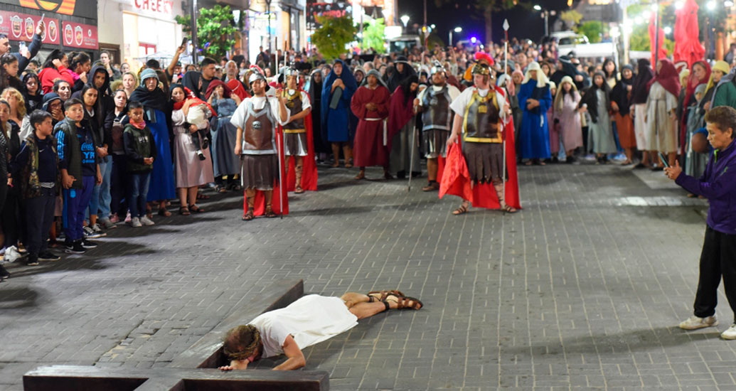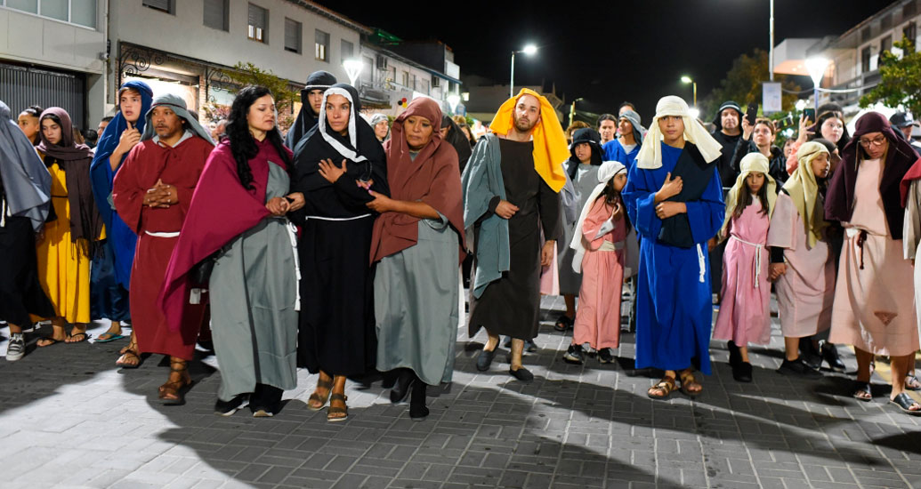 La representación recrea la Pasión, Muerte y Resurrección de Jesús, con artistas locales y la participación de la comunidad en la confección del vestuario, puesta en escena y escenografía.