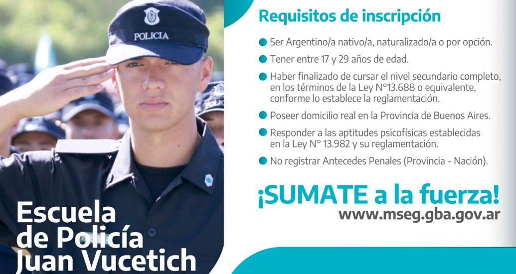 Es para la Escuela de Policía Juan Vucetich para el ciclo 2024. Hay requisitos que se deben cumplir. En la nota, toda la data necesaria.