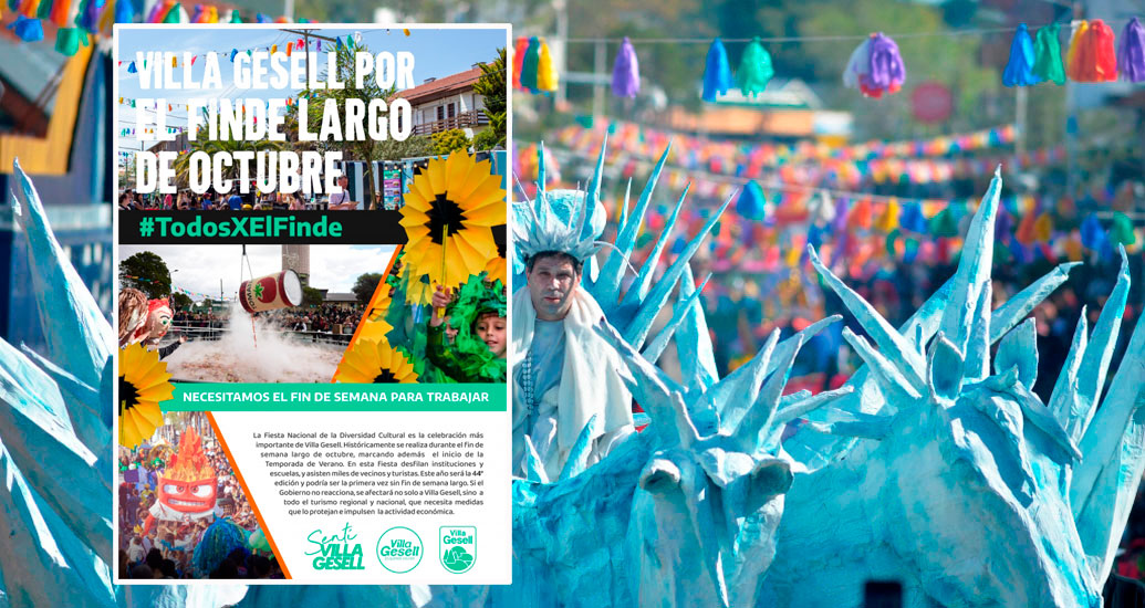 “Gesell por el Finde Largo” es la campaña que une a instituciones locales, colectividades, estudiantes, emprendedores, gastronómicos, comerciantes y hoteleros, entre otros grupos y sectores de la comunidad, en defensa de la Fiesta de la Diversidad Cultural y el turismo.