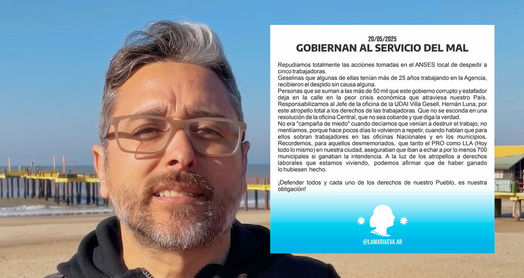 En un comunicado, la "María Eva" no tuvo moderaciones al hablar de los despidos: "Responsabilizamos al jefe de la oficina de la UDAI Villa Gesell, Hernan Luna, por este atropello total a los derechos de los trabajadores. Que no se esconda en una resolución de la oficina central, que no sea cobarde y que diga la verdad".