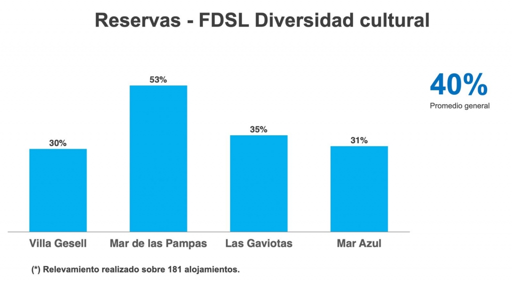 De acuerdo al relevamiento, Villa Gesell registra un 30% de reservas, Mar de las Pampas un 53%, Las Gaviotas un 35% y Mar Azul un 31%, alcanzando así un promedio general del 40% entre todas las localidades.