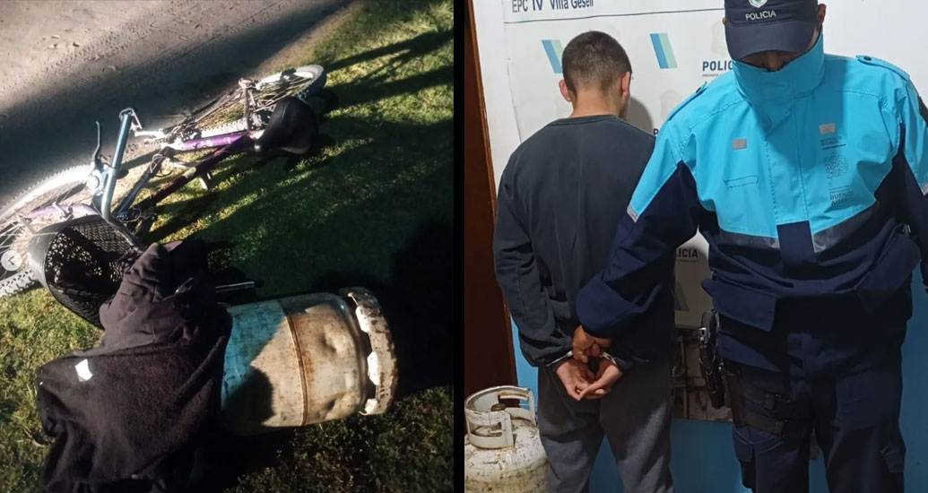 Personal de la Estación de Policía Comunal cuarta de Villa Gesell interceptó, en avenida 15 entre paseos 113 y 113 bis, a un ladrón que circulaba en bicicleta transportando una garrafa que había sido robada minutos antes junto a una caja de herramientas.