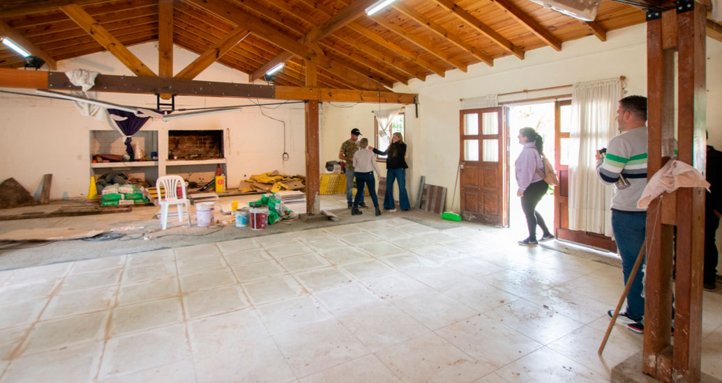 El Gobierno avanza con los trabajos de reforma en la Casa de los Abuelos. Gastarán 15 millones de pesos, gestionados ante la Provincia de Bs.As, para el reemplazo completo del piso del SUM y del área de ingreso.