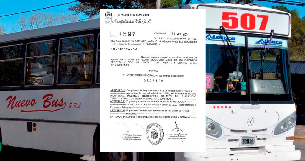 El Gobierno del intendente Gustavo Barrera otorgó un nuevo subsidio a la empresa de micros Nuevos Bus. En esta oportunidad fueron más de 19 millones de pesos, todo en el marco de una municipalidad en crisis y sin dinero para absolutamente nada.