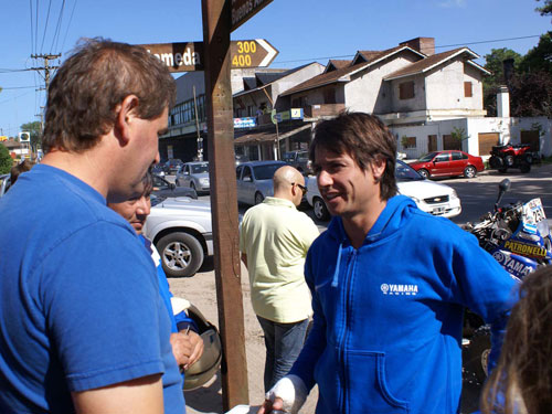 El piloto de Las Flores llegó por la playa andando en el cuatriciclo que lo llevó a la victoria, se dio un abrazo con el propietario del local Hugo Casasola, y comenzó a responder las preguntas del público presente que aprovechó la ocasión para saludarlo y fotografiarse junto a uno de los personajes más nombrados en Argentina durante el mes pasado.