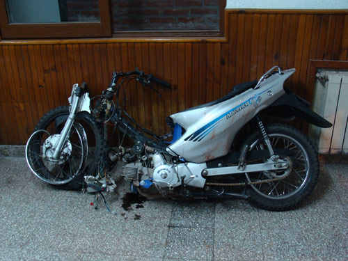 Según la declaración policial del conductor del automóvil, la motocicleta se cruzó de carril al menos un metro, y de hecho fue el rodado el que llevó por delante al auto ya que el mismo frenó totalmente al observar que el motovehículo se le venía encima.