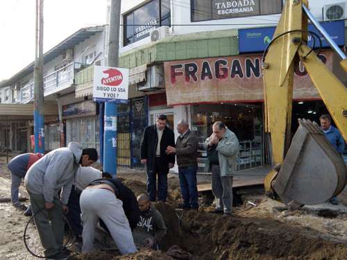 Durante la visita pudo constatar la culminación del retiro de baldosas de una de las veredas, dándole paso a los trabajos de enterrado de cables de las cooperativas telefónica, eléctrica además de la empresa de televisión.