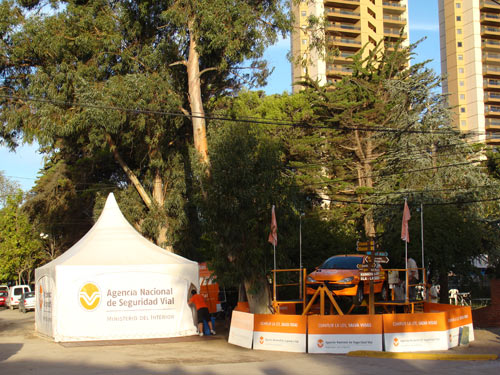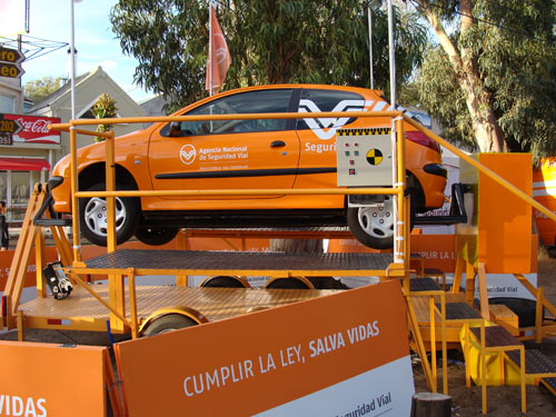 Sin embargo, la atracción principal de la carpa es el simulador de vuelco instalado en plena calle y que permite a quien se sube a probarlo lograr percibir la sensación, minimizada porque el auto no choca contra nada y no vuelca en movimiento ni en velocidad, de accidentarse y dar dos tumbos en el aire de 360º, todo con las medidas de seguridad probadas de antemano para no tener sorpresas.