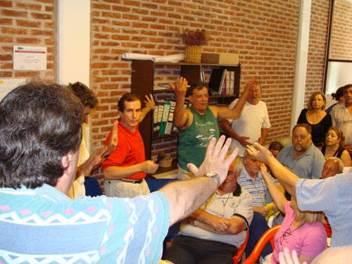 El encuentro comenzó con la lectura, primero, de un documento redactado por la comisión directiva de la UCI pero que no fue elegido por la "asamblea". En consecuencia, los vecinos y turistas presentes coincidieron en formular uno nuevo que incluyese un pedido de una nueva asamblea de mayores contribuyentes para definir un nuevo marco tributario.