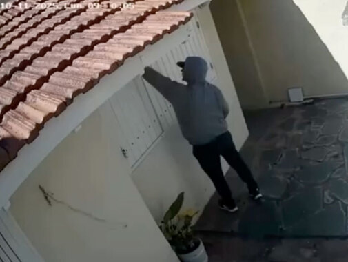 Ocurrió hoy a las 9.40 AM en una vivienda de calle 304 y alameda 201. En las cámaras se lo ve al sujeto ingresar y corroborar si había algo abierto.