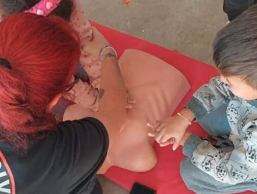 Se enseñaron maniobras básicas de RCP, números de emergencia y conceptos iniciales de primeros auxilios.